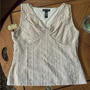 Tan Lace & Sequin Sleeveless Top