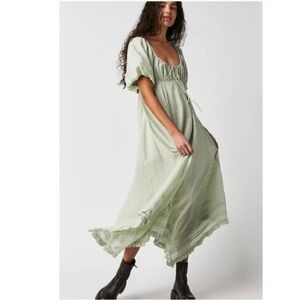 Madewell smocked waist striped linen blend midi skirt