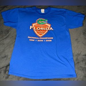 This is a shirt commemorating the three time National Champion Florida Gators Football team. The shirt is from 2009, and highlights the 1996, 2006, and 2008 National Championships