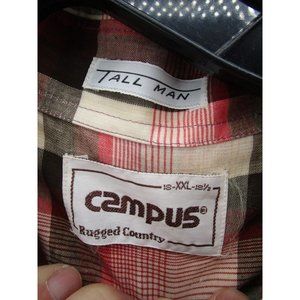 VINTAGE Campus Shirt XXL Tall Red Western Button Up Plaid Flap Pockets