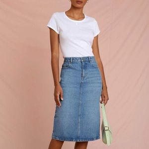 rouje denitsa denim midi skirt