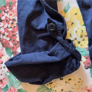 Women’s Coldwater Creek Navy Blue Cotton V-Neck Tee Roll Up Sleeves