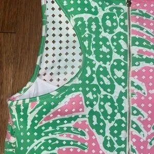 Lilly Pulitzer Perla Pink Laser Cut Scuba Shift Dress Pink and Green
