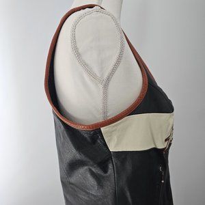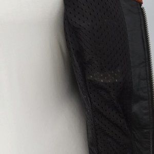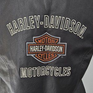 HARLEY DAVIDSON black VEST motorcycle GENUINE LEATHER pockets ZIPPER biker ORANG
