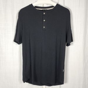 Black button through knitted polo shirt.