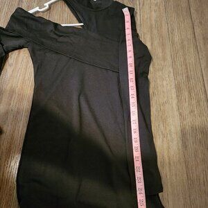 Commense Mock Neck Oblique Cutout Rib Long Sleeve Short Dress NWT Black Small