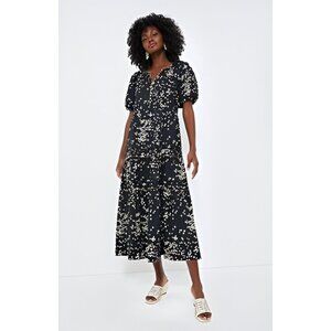 Quince Women's Black Linen Button Front Dress sz M Midi A-Line Belt Short Sleeve