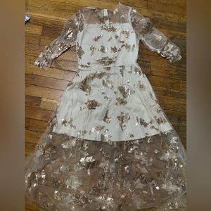 Light Pink/Blush color with gold palette embellishments, fringe, rhinestones, & pearls