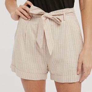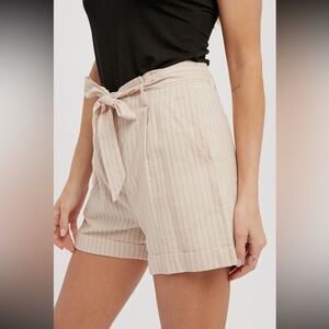 🆕Cotton Stripe Shorts Lightweight Almond Tan Neutral Pockets
