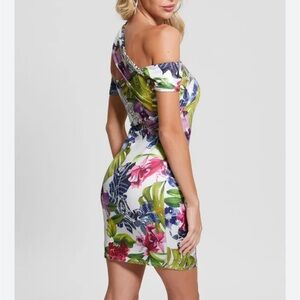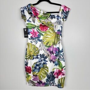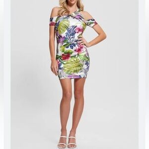 NWT Guess Malori Twisted Strap Tropical Print Bodycon Dress Size 6 Island Fancy