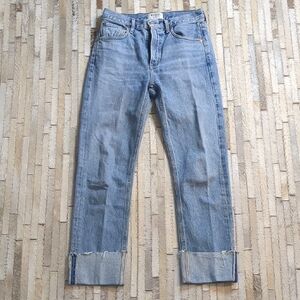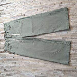 Approximate measurements: 17!&" waist, 11.5" rise, 32" inseam, 42" length, 8" leg openings
