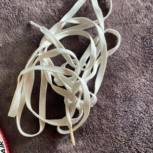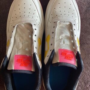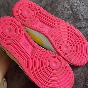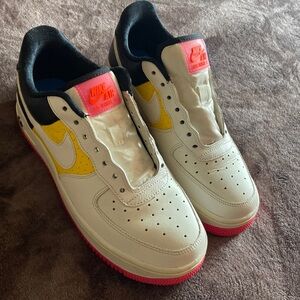 WOMENS SIZE 8 NIKE AIR FORCE 1. LACES ARE THERE IF YOU WANT. HAS A LITTLE YELLOW ON THEM BUT WILL BE SHIPPED WITH. HAVE BEEN RECENTLY CLEANED.