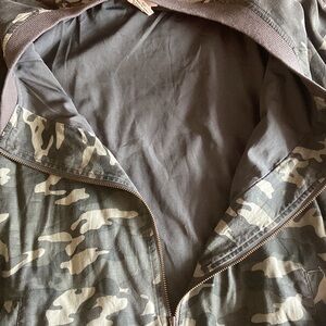 WOMENS CAMO JACKET. SIZE XL. RAYON/POLY. 2 FRONT POCKETS.