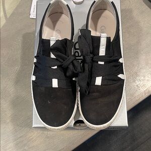 Ladies Converse 7.5, but fits like an 8. Very clean and never been washed, never needed to. Only worn a couple of times. I don’t remember the color, but they are a very pretty neutral dark gray.
