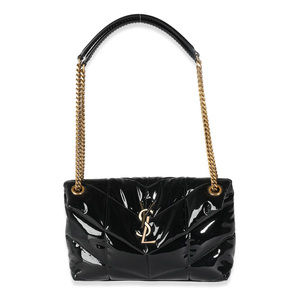 Listing Title: Saint Laurent Black Quilted Patent Small Lou Puffer Chain Bag