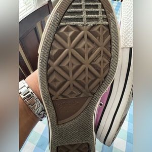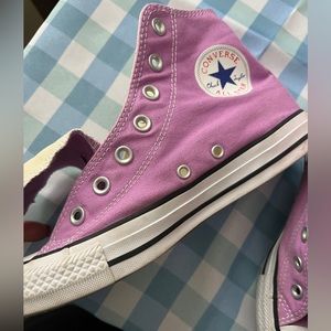 Adorable and new hi-top Chucks!! Perfect with jeans, shorts, skirts and dresses. Please note these come without shoe strings.