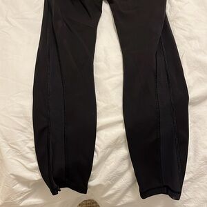 black, size 4, black mesh detail on sides, no dryer used, back pocket, wait can be tightened