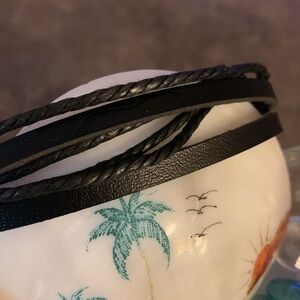 # 7- 4 piece leather bracelet, woven cuff, hemp cord adjustable wristbands and elastic band. All 4 pieces are unisex and can be worn individually or stacked. As some are adjustable, you can customize your perfect size. Great for anyone feeling stylish. All offers are accepted or countered & questions are welcome.