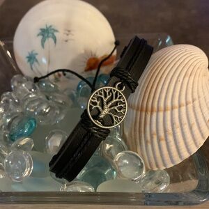 #8- 3 piece leather bracelet, woven cuff, hemp cord adjustable wristbands and elastic band. All 3 pieces are unisex and can be worn individually or stacked. As some are adjustable, you can customize your perfect size. Great for anyone feeling stylish. All offers are accepted or countered & questions are welcome.