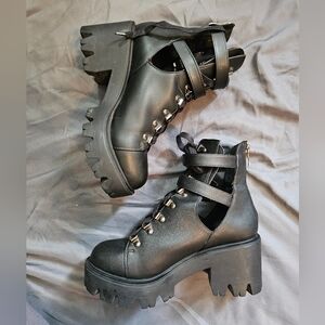 Dr. Marten Dr. Martens doc marten knee high alternative boots grunge emo goth boots lace up boots flat foot