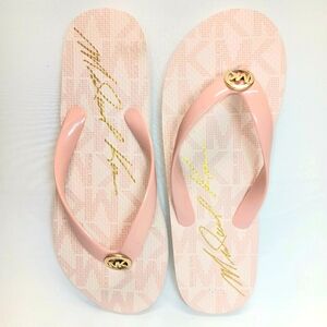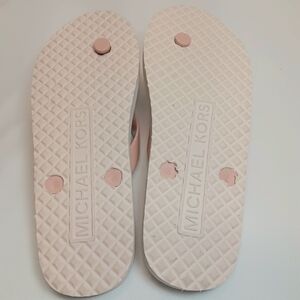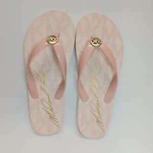 Brand New Without Tags or box. Please see all photos as this is the exact item you will receive. Baby Pink, White and gold MK Flip flop Sandals perfect for a day at the beach or out running errands.