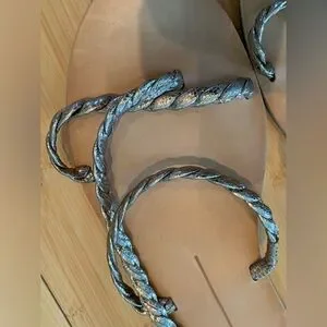 Braided flat sandals by Dolce Vita, size 7.5, fit is true to size. Please use the first three photos for reference, the color being sold and shown in the actual photos is a slightly darker matte gold. Worn once very briefly, in excellent condition.