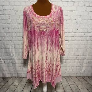 Lularoe “Emily” Long Sleeve Swing Dress Size L Pink Tie Dye