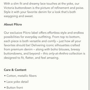 Anthropologie Pilcro The Victoria Lace Buttondown NWT 6P