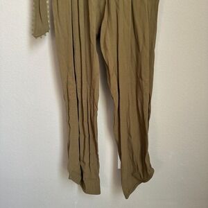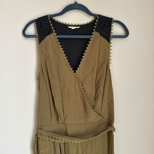 Anthropologie Leifsdottier Olive Green Jumpsuit Sani Lace Belted Waiste Size 8