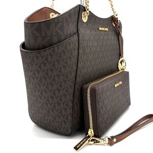 Michael Kors Large Jet Set Travel Chain Shoulder Bag & Continental Wallet Brown