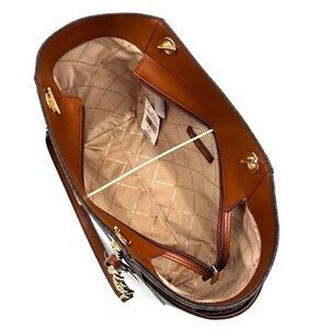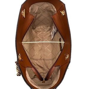 • Interior: 1 zippered pocket & 2 slip pockets Michael Kors signature lining.