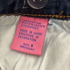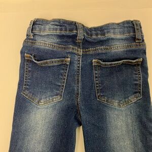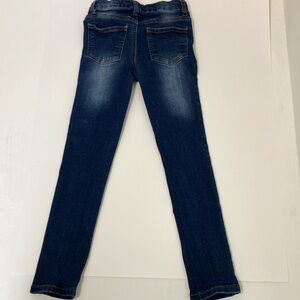 Girls size 6 small jeans. Worn wash. Dark blue. Stretchy, skinny jeans. Worn once. Gently used. Like new.