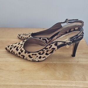 J. Renee Leopard Animal Print Halley Slingback Pointed Toe Heels Shoes. Size 9.