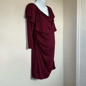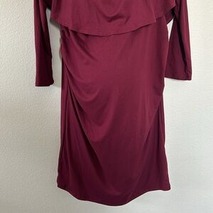 PinkBlush Maroon Burgundy Ruffle Trim Off Shoulder Fitted Maternity Dress