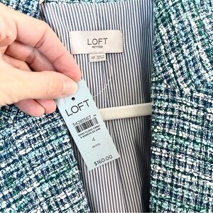 NWT Loft Tweed Double Breasted Blazer, size 4 Petites. Blue.