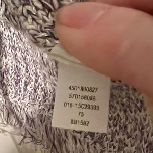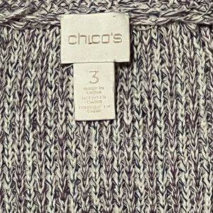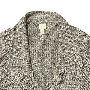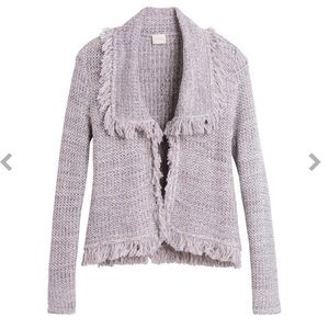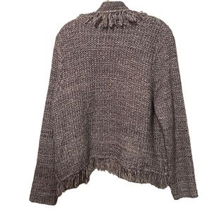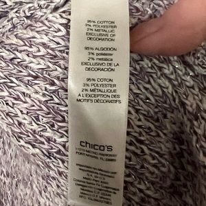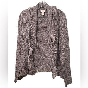 Chico’s Freida fringed open front cardigan in lilac and silver metallic thread