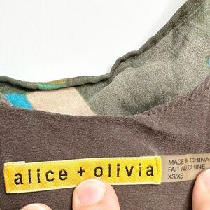 Alice + Olivia Multicolor Short Dress Size XS/S 100% Silk Brown Artsy Geometric