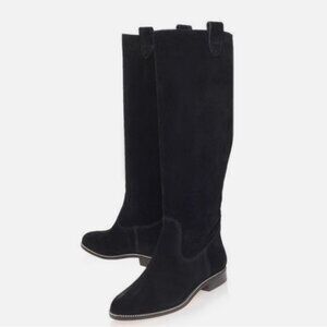 Michael Michael Kors Bay View Riding Black Suede Knee High Pull On Boots