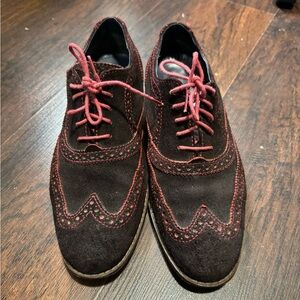 Cole Haan Dark Brown Suede Wingtip Shoe Pink Stitching Size 7.5