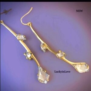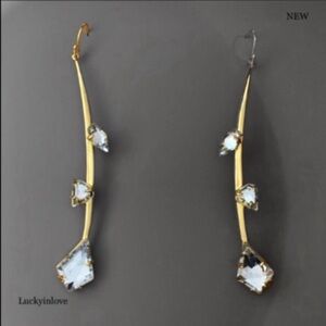 Alexis Bittar Curved, linear earrings. A golden flower spray with diamond like, crystal flower buds.