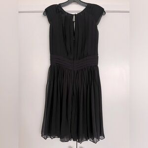 Pretty knee-length dress in pleated black chiffon. Keyhole detail in front and back. Nice drape, with a lining. Excellent condition.