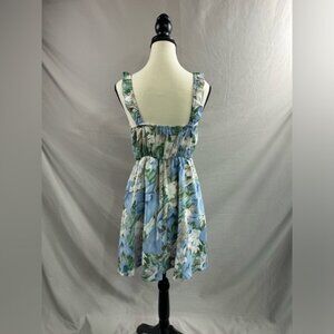 Blue Flower Print Ruffle Hem Mini Cami Dress