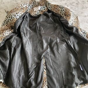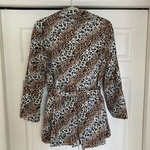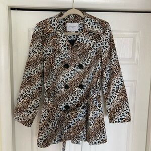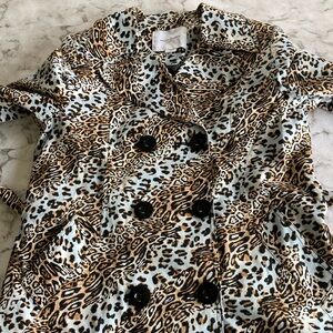Animal print button and belt closure fully lined light powder blue and brown Light padded shoulders deep pockets make an offer! ☺️