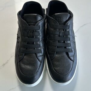 TI;ME sneaker is a collapsible heel brings slip-on comfort to this leather sneaker, moisture wicking wool lining and rubber sawtooth treads, and in excellent condition.