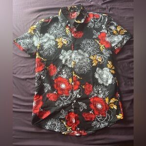 Men’s causal floral print button down shirt size M