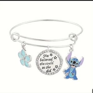 1pc Disney Stitch Charm Bracelet For Girls, Cute Bangle Bracelet Jewelry For Gifts