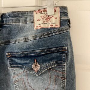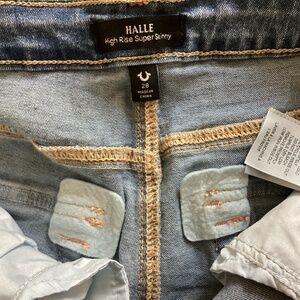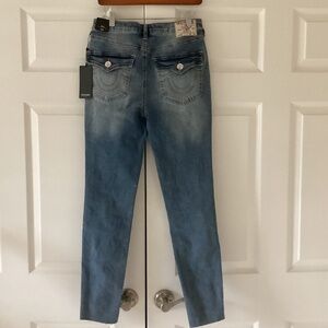 True Religion Halle High Rise Skinny Raw Hem Jeans in Medium Cloudless Wash 28