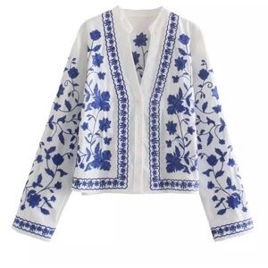 NWT lovely embroidered white and blue summer weight blazer. Stunning!