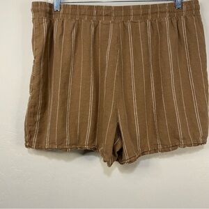 TIME AND TRU Linen Blend Shorts Pockets 4” Brown Stripe Plus Size XXL 20