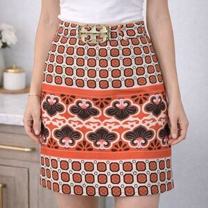 🎉HP🎉 Tory Burch Orange/Cream Knee Length Skirt w/ Bold Logo Accent Size 6 NWOT